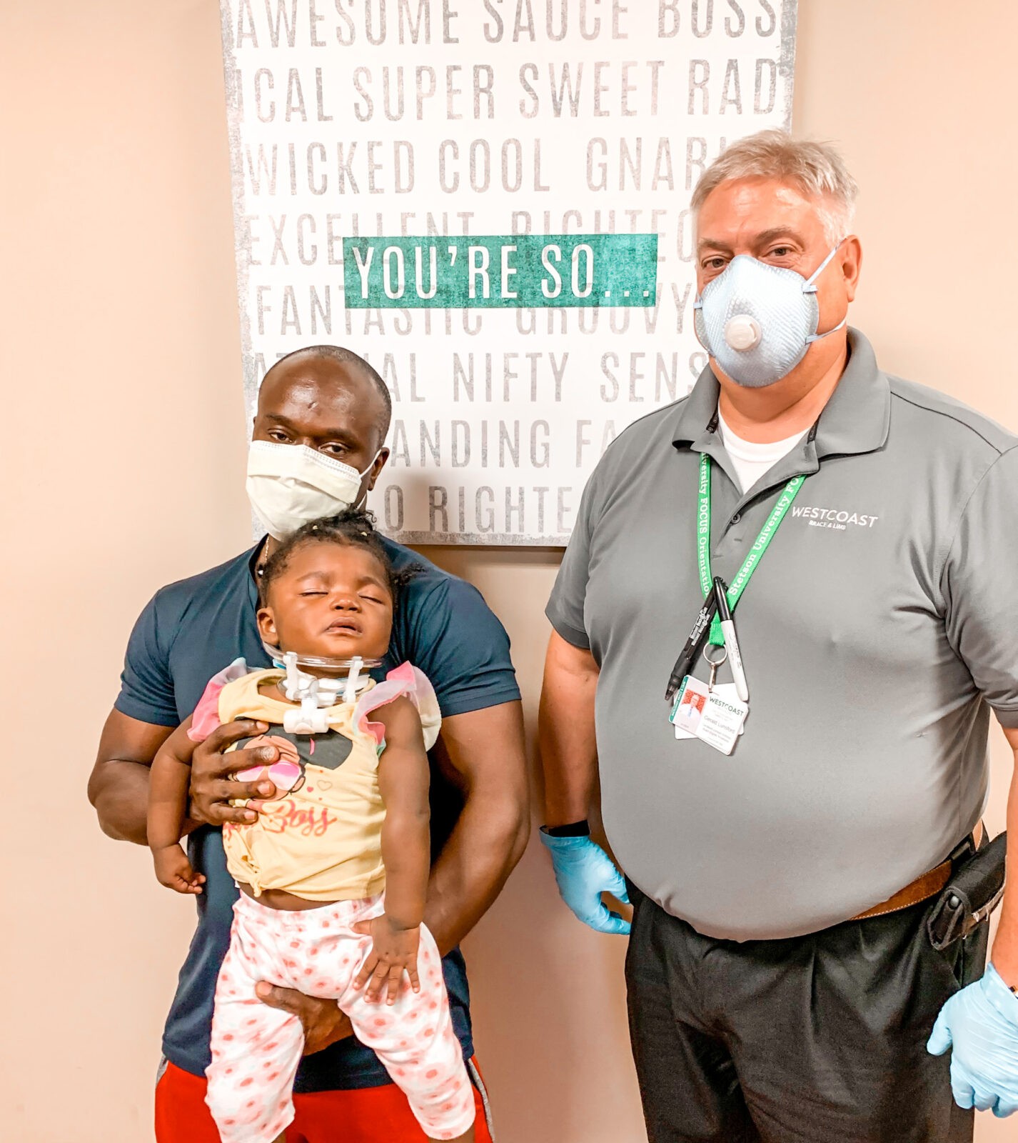 Gerald, Amber’s WCBL Orthotist, took a unique approach to her problem! Using a TOT Collar ™, Gerald found a solution that would not interfere with Amber’s tracheotomy. The collar allows Amber to keep her head in a more neutral and natural position, thus removing the compression on her airway.